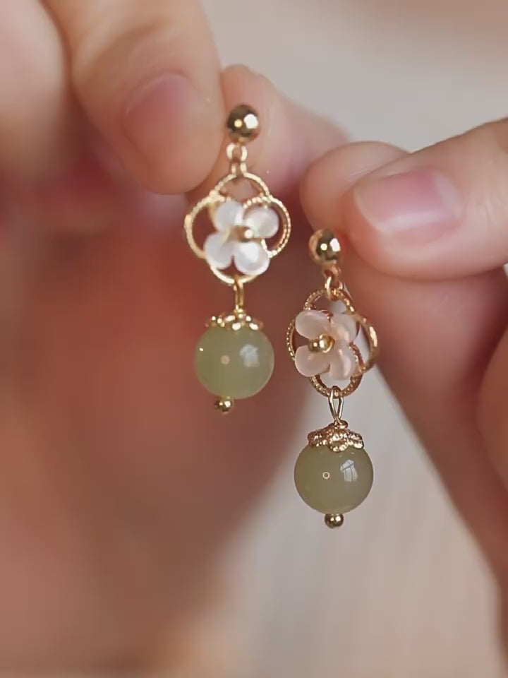 Garden of flowers - Hetian Jade Earrings